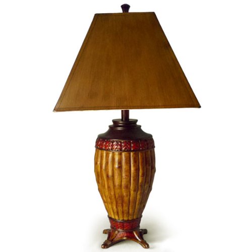 Cheap 31" Bamboo Accent Poly Resin Table Lamp with Wooden Parchment Shade Review