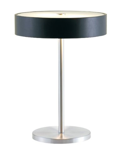 Minimalist lines add up to bold style in Adesso's Forest table lamp. Crafted with a narrow, black wood ring sandwiched between frosted glass top and bottom panels, the shade perches on a simple center rod and round base of glowing anodized aluminum. The end result is a modern-classic design that blends subtlety with cool panache. Forest takes two 40-watt candelabra-base torpedo bulbs and turns on and off with a line switch. It measures 12 inches in diameter by 16 inches high; a matching floor lamp is sold separately. --Kara Karll