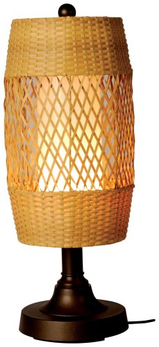 Antique Honey weatherproof wicker barrel shade with diamond center patterns highlight these elegant contemporary lamps. All resin construction feature an opal polycarbonate light bulb enclosure which allows the use of standard 100 watt bulb.