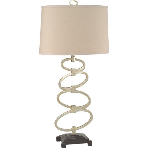 Bob Mackie Style designed by Deborah Shavlik is the epitome of contemporary lighting with an elegant twist of modernity. This attractive 1-light table lamp will brighten any setting. Dress up your décor and light up your room with a burnished silver finished table lamp with white shade. Fixture requires 1 medium base 100w maximum bulb (not included). Measures 31 inches in height; 10 inches wide and 15 inches in length. Royce Lighting, Elegance for America's Homes.