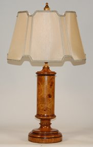 A porcelain column with a faux burled wood finish, this is an understated, dignified lamp for a formal library, study, living room or bedroom.